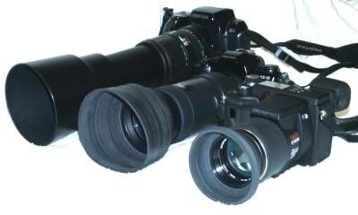 | オリンパス E100RS 35mm換算38-380mm いよいよデジカメです。 このカメラ、もともとセミプロ用だったのか高機能、高性能なんですが、発売当時ちょっと時代遅れの150万画素のため、相当売れ残ったらしく、投げ売りが始まりました。インターネットでも価格.comを中心に盛り上がっていて、私も我慢できずに購入しました。 とにかく軽いのが楽です。おまけに手ぶれ補正までついています。 写真で見てわかるとおり、この大きさの違いはあらゆる事を超越して、デジタルの偉大さを感じずにはいられません。 ただし、撮影スタイルが大きく変わり、撮影する楽しみが半減してしまいました。 その理由は電子ファインダーです。左右に移動する飛行機を追いかけるには、この電子ファインダーはまるっきりの役立たずです。Z1のときは、カメラを左右に振りつつ、ベストショットでレリーズしていて、撮影している「ファインダーを切り取る」という実感を味わっていましたが、電子ファインダーでは、像が全然追いつかず、どこを狙っているのかさっぱりわからないのです。 しかしここはデジカメの良さか、連写が効くので、とにかく数打てば当たる方式で、カメラを左右に振ればなんとか撮れるようになりました。でも楽しくない。 同じような悩みは、鳥を撮影する人にもあるらしく、外付けファインダーを自作したりしているようです。 Marui's web page おまけ)ボディが黒のカメラを撮影するのは難しいですね。おまけに背景を白にしてしまったので。ラバーフードが汚く映ってしまいました。 |
