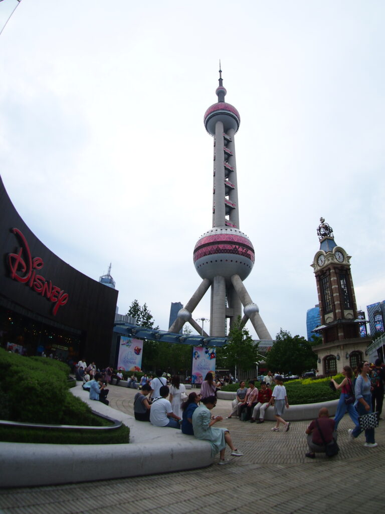 歩行者デッキは、周辺の商業ビルと接続していて、東方明珠電視塔などの高層ビル群を背景に自撮りしたり、ショッピングを楽しんだりする人たちで、ごった返していた